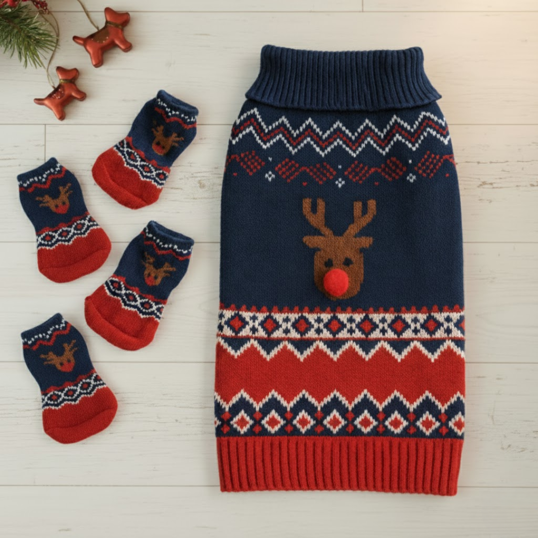 U kompletu se GRATIS dobijaju i 4 novogodišnje čarapice, koje štite šapice od hladnoće.